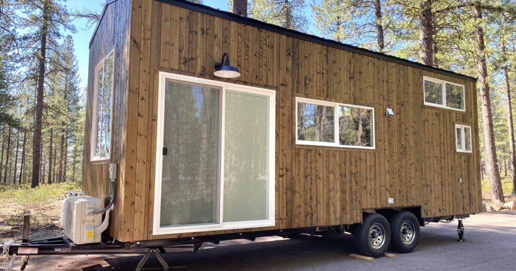 The Sonoma, by Spindrift Properties, is predicated on a double-axle trailer and has a size of 26 ft (7.9 m). It is completed in wooden, with beneficiant glazing, and is topped by a metallic roof.