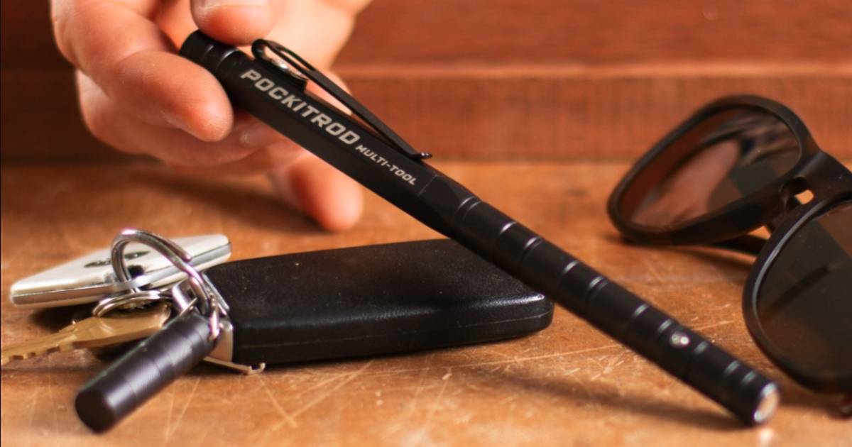 The totally outfitted Pockitrod measures 6.7 inches (17 cm) lengthy and weighs in at 1.8 oz (50g). It measures about half an inch (12 mm) in diameter, not together with the pocket clip, making for a really slim package deal that is simple to hold by itself or together with a conventional multitool or two for heightened preparedness.