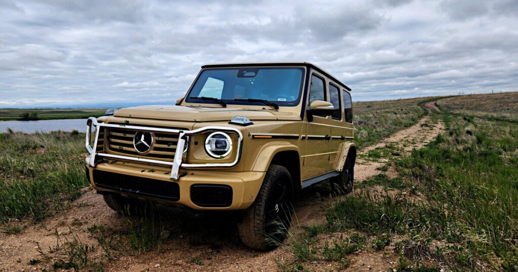 The G 580’s 116-kWh battery is built-in right into a strengthened underbody designed to take off-road punishment, and Mercedes says it delivers about 240-ish miles (386 km) of vary, per the EPA. And, like most EVs, a bit much less in the true world. It helps quick charging as much as 200 kW, so juice-ups aren’t horrible … except you are in a spot like Moab, the place a charger is tougher to search out than a Starbucks in Loss of life Valley.