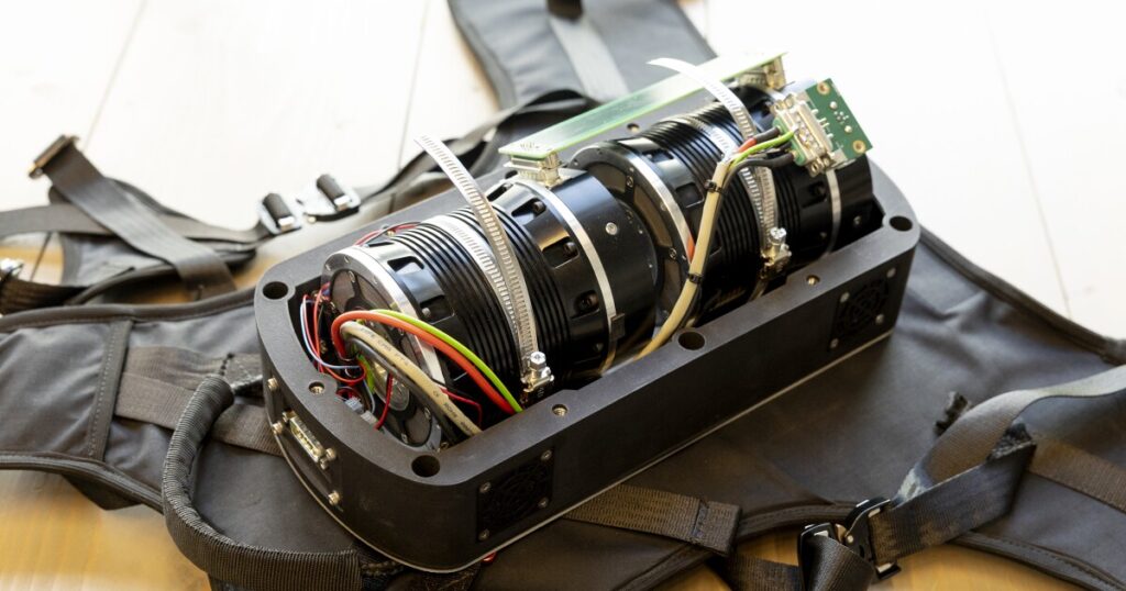 Using two spinning-flywheel gyroscopes that are triggered by its wearer’s actions, the pack has a damping impact on unintentional rotational actions of the torso. Though the counteractive resistance that it creates would not outright cease these actions, it slows them to the purpose that the particular person has time to regain their steadiness earlier than falling over.