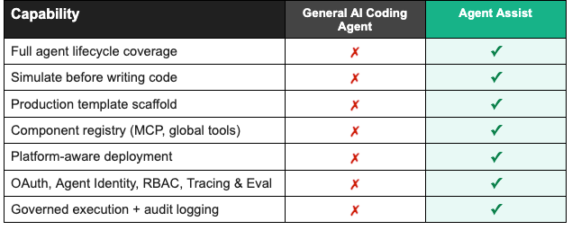 The agent you designed and simulated comes scaffolded with every thing it must run in manufacturing, together with OAuth authentication (no shared API keys), modular MCP server elements, deployment configuration, monitoring, and testing frameworks. Out of the field, Agent Help handles infrastructure that usually takes days to piece collectively.