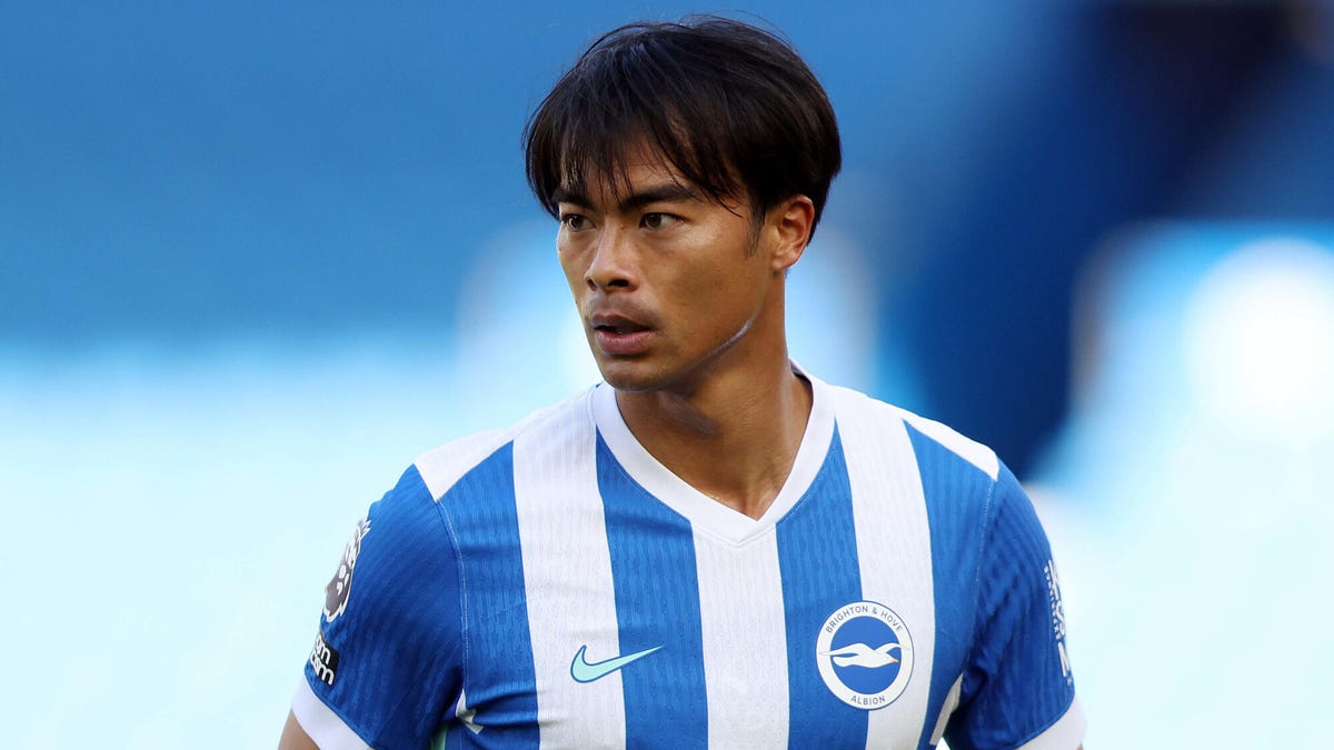 Kaoru Mitoma of Brighton & Hove Albion looking to his right.