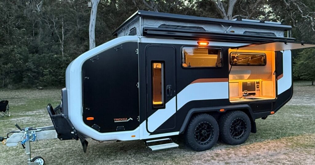 Australia’s Stockman Merchandise acquired its begin in what it calls Pod trailers, small, space-maximizing cargo trailers with tub-like plastic covers. It then expanded into a few of the sharpest teardrop campers we have ever seen. It is now rising as soon as once more, with its largest trailer but. The all-new Trekka debuts as a smooth-edged dual-axle trailer with a whole camper inside, two kitchens, and devoted, safe inside area for ebikes, surfboards or different journey gear.