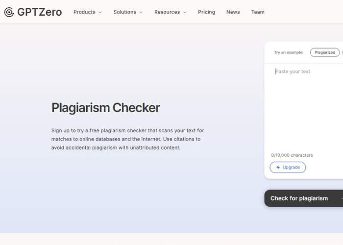 Explore GPTZero Plagiarism Checker